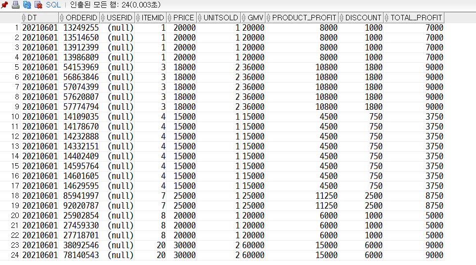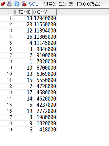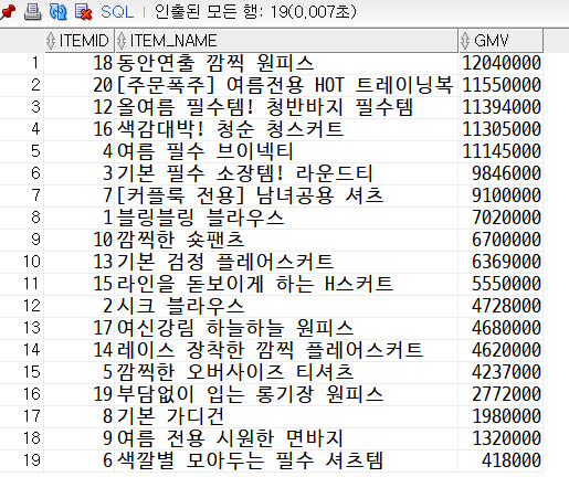 4) 위의 결과 + itemid 의 제품이 무엇인지 보여주기(item)