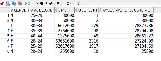 8. 인당 평균 구매 금액 = 총 구매 금액 / 총 고객 수