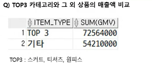 1. TOP3 카테고리와 그 외 상품의 매출액 비교