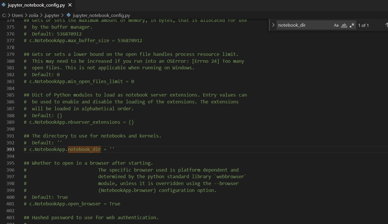 ctrl + f : notebook_dir 찾기