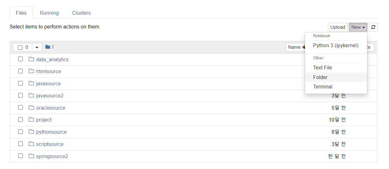 폴더 클릭 후 Rename : 폴더명 data_analytics 으로 변경