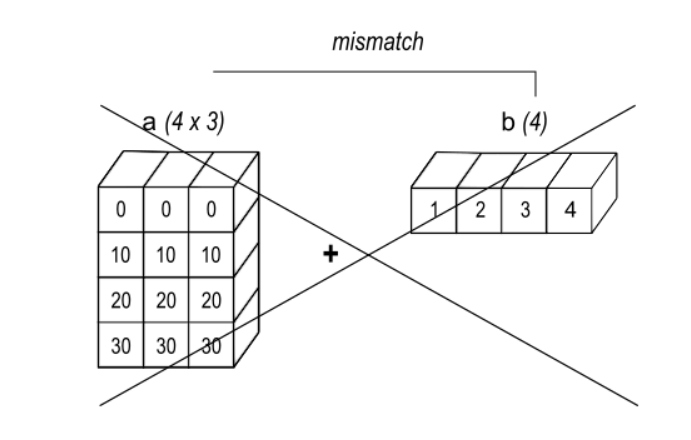 - 뒷 차원에서 부터 비교하여 Shape 같거나 차원 중 값이 1인 것이 존재하면 가능
