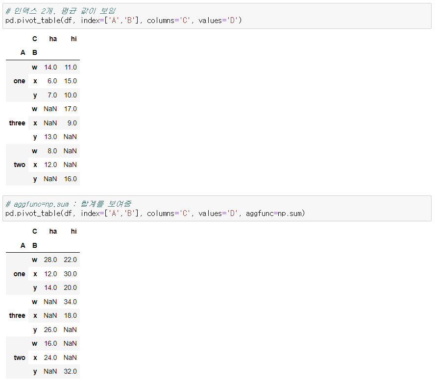 - groupby() 를 편하게 만들어 놓은게 pivot_table()