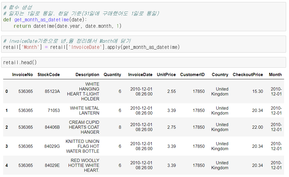 - 각 구매가 최초 구매로부터 얼마나 개월수가 지났는지 계산