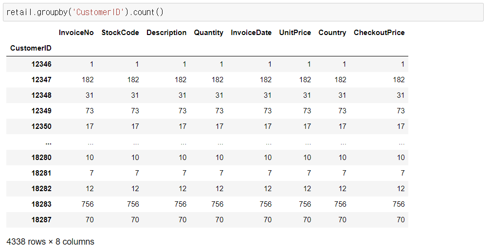 1) 고객 ID 기준 count