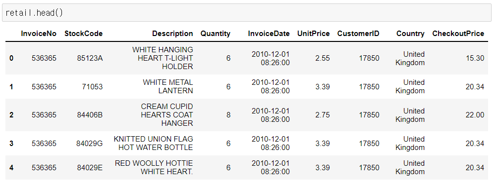 - 온라인 리테일 사이트의 2010/12 ~ 2011/12 주문 기록 데이터