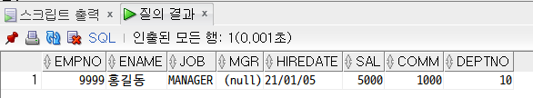 6) emp_temp 테이블에 값 넣어주기(홍길동)
