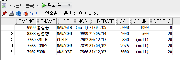 7-1) emp_temp 테이블에 값 넣어주기(성춘향)