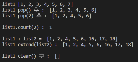 print("list1.count(2) : ", list1.count(2)) # 2라는 요소가 list1에 몇개 있는지 개수 세어줌.