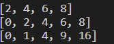 print([x * 2 for x in range(5)])