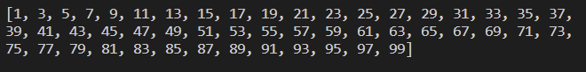 list1 = [n for n in range(1, 101) if n % 2 == 1]