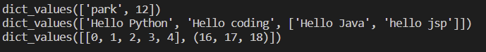 딕셔너리 함수 : 리스트와 튜플은 아님.