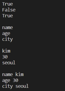 my_info = {"name": "kim", "age": 30, "city": "seoul"}
