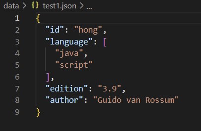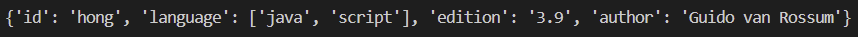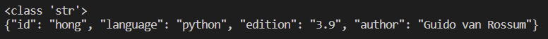 data = '{"id": "hong", "language": "python", "edition": "3.9", "author": "Guido van Rossum"}'