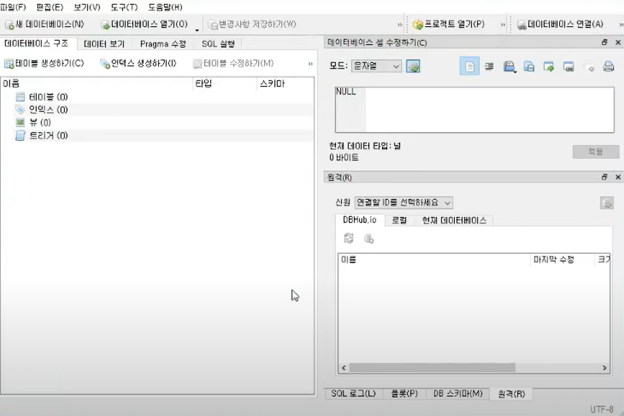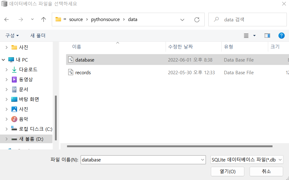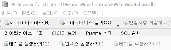 DB Browser for SQLite 실행 - 데이터베이스 열기