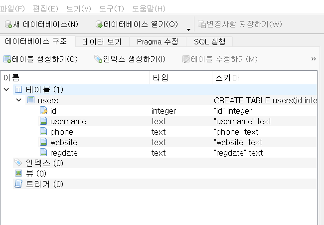 "CREATE TABLE IF NOT EXISTS users(id integer primary key, username text, phone text, website text, regdate text)"