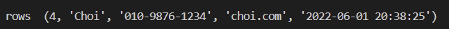 (4, "Choi", "010-9876-1234", "choi.com", now_date_time),