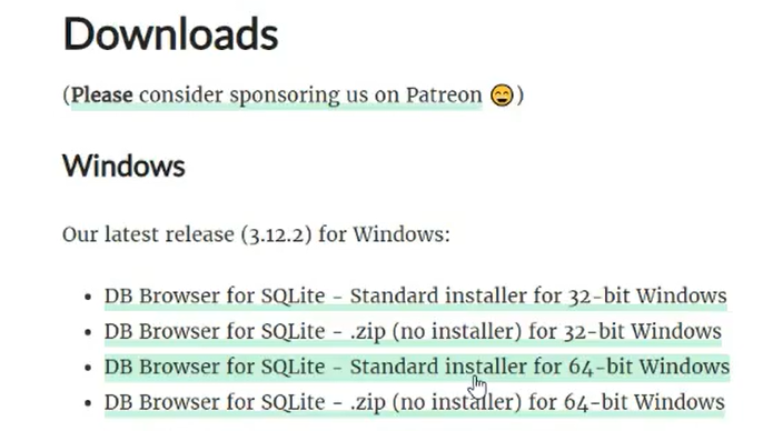 - DB Browser for SQLite - Standard installer for 64-bit Windows 설치
