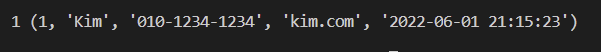 (2, "Hong", "010-1234-4567", "hong.com", now_date_time),