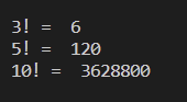 팩토리얼 : 4! = 4 * 3 * 2 * 1