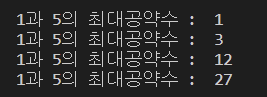 print("1과 5의 최대공약수 : ", gcd(1, 5))