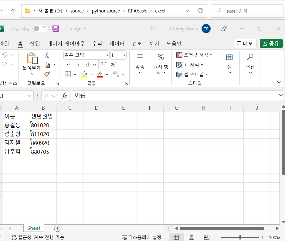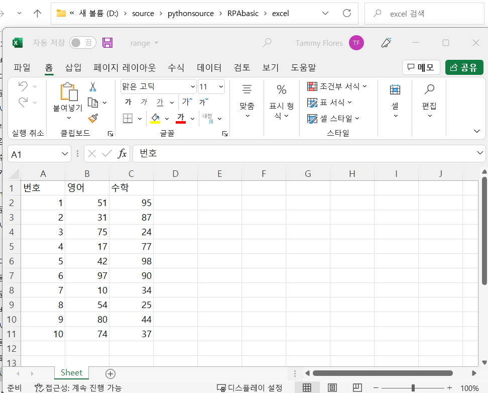 Python RPA(업무자동화) 개념 및 실습 - 엑셀(2)