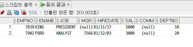 4) 급여가 2500이상이고, 직업이 ANALYST 인 사원 조회