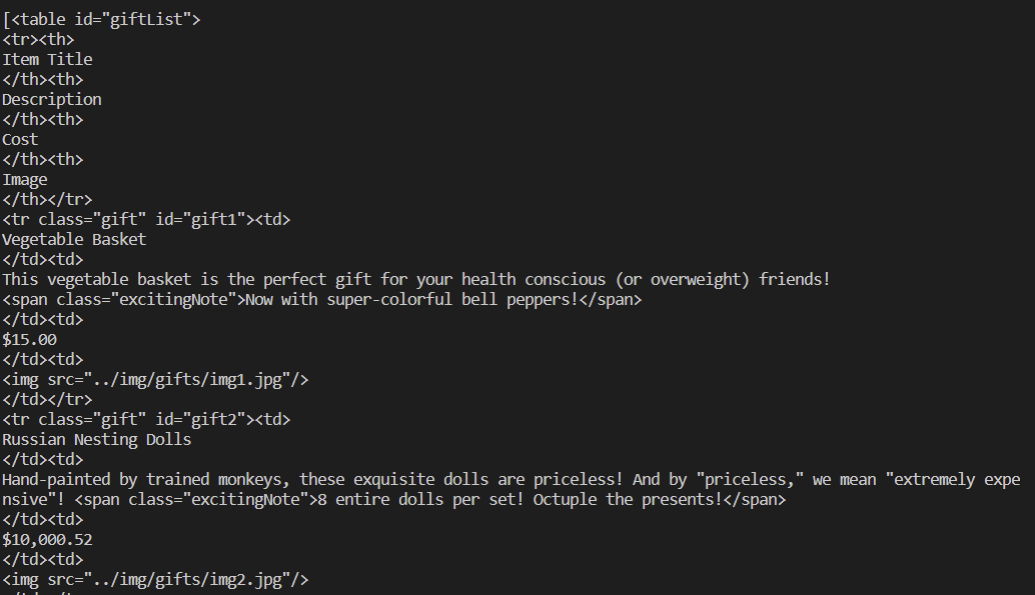 row = soup.select_one("table#giftList > tr:nth-child(1)")
