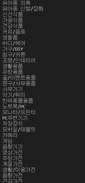 print("카테고리 개수 : ", len(item__2depth)) # 개수 알기
