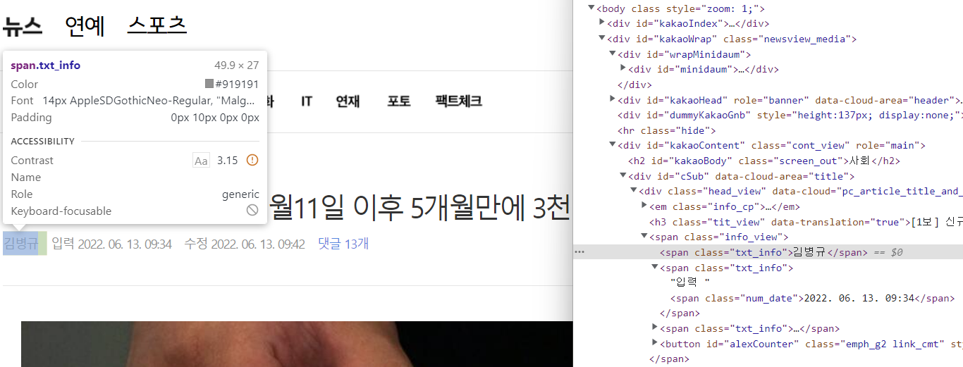 print("기사 첫 문단 내용 : ", para1.get_text())