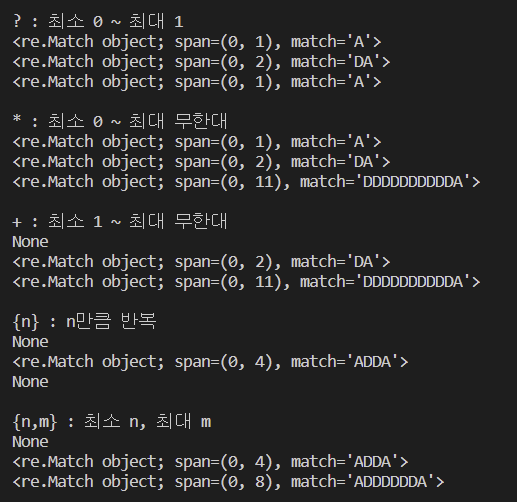 print(pattern.search("ADDDDDDA")) # 최대 6개 조건 만족