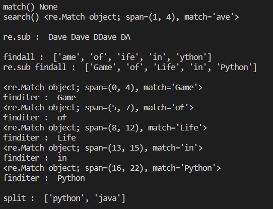 print("re.sub findall : ", pattern.findall("Game of Life in Python"))