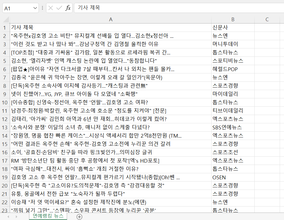 - 시트명 : 연예랭킹뉴스