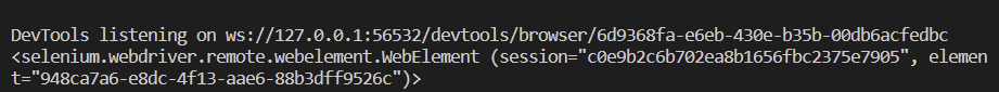 ) # <selenium.webdriver.remote.webelement.WebElement (session="44e5c34d77c1aefae5ac98a1c3c32d20", element="e0d596aa-1086-4545-b46d-85929d7ee47f")>