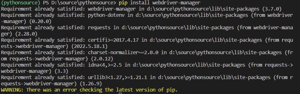 라이브러리 추가 설치 : pip install webdriver-manager
