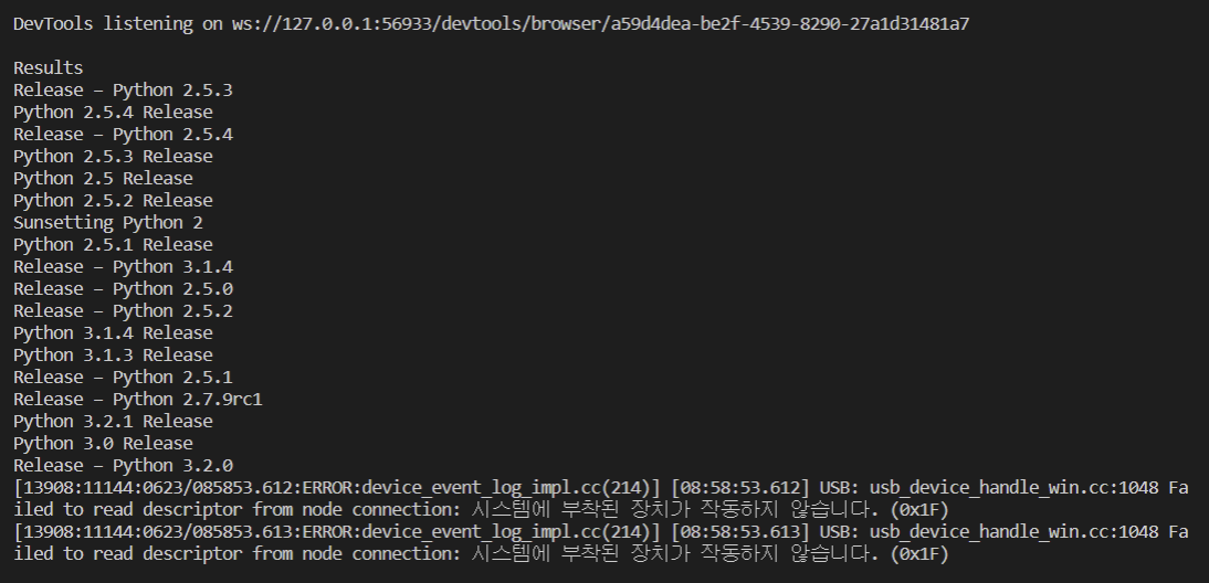 파이썬 사이트에서 python 검색 후 결과 타이틀 가지고 오기