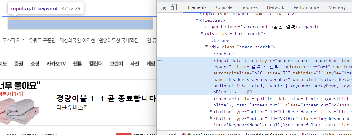 # 사이트 검색 창 찾기