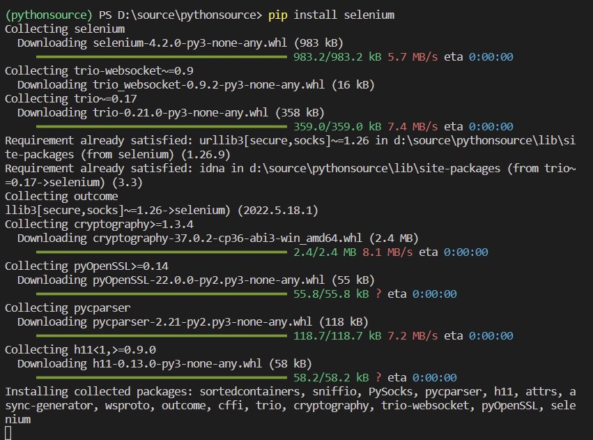 라이브러리 설치 : pip install selenium