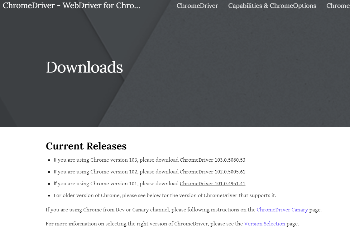 크롬 드라이버 검색 : https://chromedriver.chromium.org/downloads