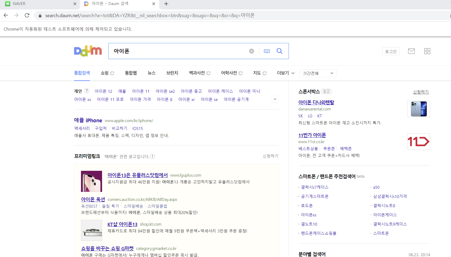 전체 스크롤 스크립트 - 네이버에서 검색 한 후 스크롤 하기