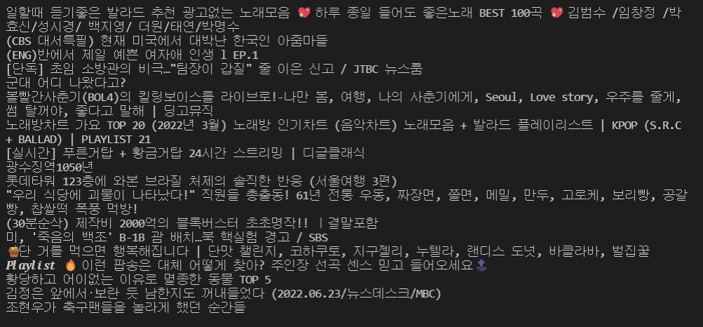 Youtube 검색어 넣고 검색 결과 출력