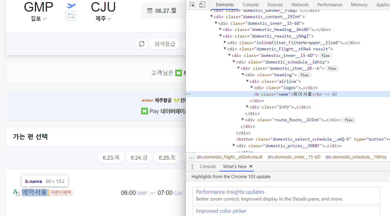 # 항공권 검색 결과 출력(항공사)